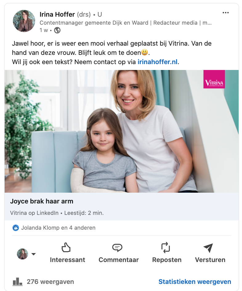 Zin om een goede en gestructureerde tekst te laten schrijven? Neem dan contact met mij op via redactie@irinahoffer.nl. Of bel/whatsapp me: 06-11 88 3000.